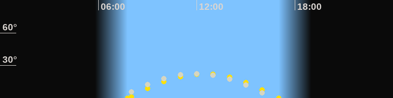 | Höchster Sonnenstand (Kulmination) | 12:23 Uhr (h = 22.4°) |