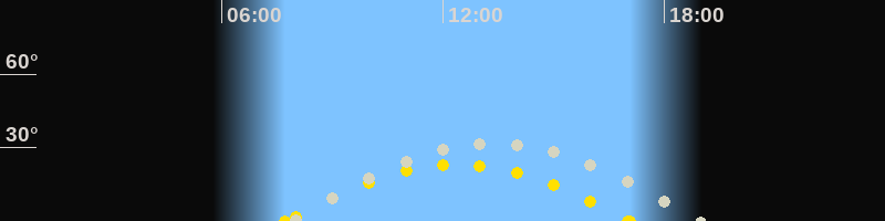 | Höchster Sonnenstand (Kulmination) | 12:24 Uhr (h = 23°) |