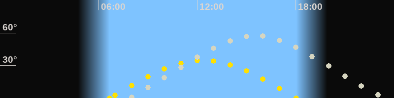 Höchster Stand (Kulmination)15:28 Uhr (h=57.3°)