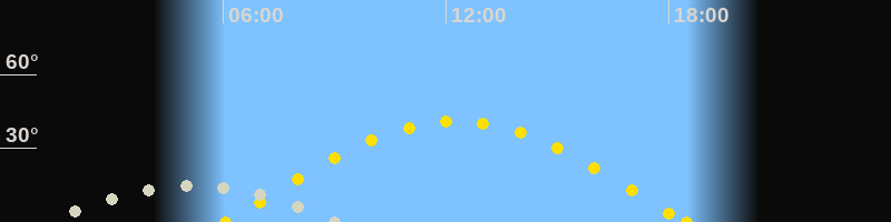 Höchster Sonnenstand (Kulmination)12:16 Uhr (h = 41.1°)