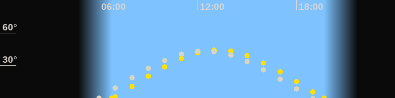 | Sonnenaufgang | 06:46 Uhr im Osten (αAz = 81.7°) |