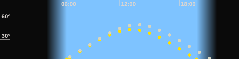 | Höchster Sonnenstand (Kulmination) | 13:13 Uhr (h = 44.9°) |