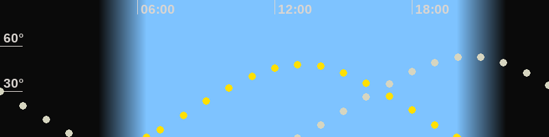 | Sonnenaufgang | 06:24 Uhr im Osten (αAz = 75.7°) |
