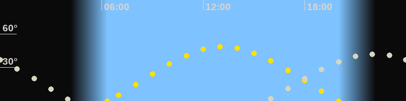 | Sonnenaufgang | 06:20 Uhr im Osten (αAz = 74.5°) |