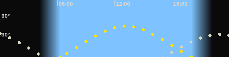 | Sonnenaufgang | 06:18 Uhr im Osten (αAz = 74°) |