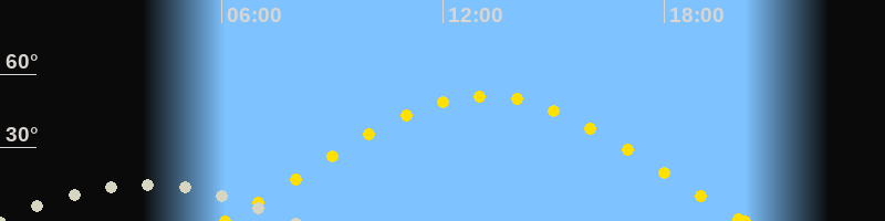 | Sonnenaufgang | 06:06 Uhr im Osten (αAz = 70.5°) |