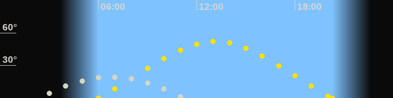 | Sonnenaufgang | 06:00 Uhr im Osten (αAz = 68.9°) |