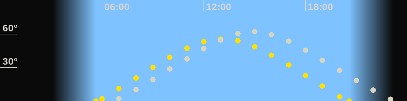 | Höchster Sonnenstand (Kulmination) | 13:06 Uhr (h = 55.5°) |