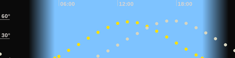 | Höchster Sonnenstand (Kulmination) | 13:06 Uhr (h = 56.4°) |