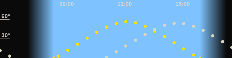 | Höchster Sonnenstand (Kulmination) | 13:06 Uhr (h = 56.6°) |