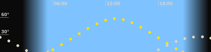 Höchster Sonnenstand (Kulmination)13:06 Uhr (h = 57.9°)
