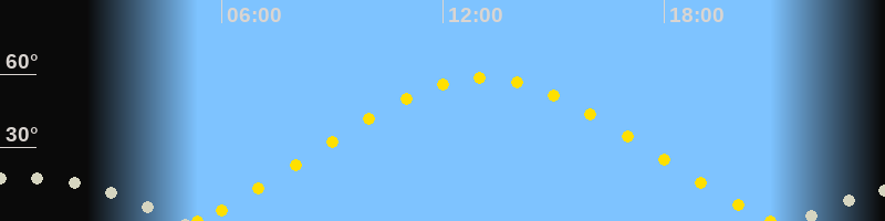 Höchster Sonnenstand (Kulmination)13:06 Uhr (h = 58.6°)