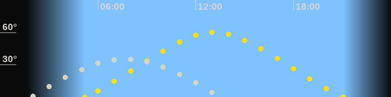 Höchster Sonnenstand (Kulmination)13:07 Uhr (h = 60.2°)