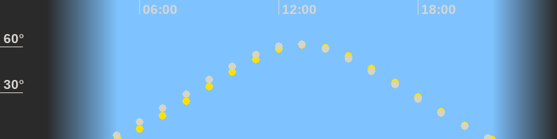 | Höchster Sonnenstand (Kulmination) | 13:08 Uhr (h = 61.3°) |