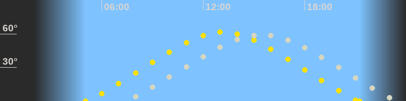 | Höchster Sonnenstand (Kulmination) | 13:08 Uhr (h = 61.7°) |