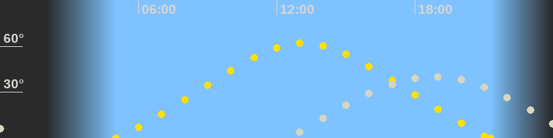 | Höchster Sonnenstand (Kulmination) | 13:09 Uhr (h = 62.1°) |