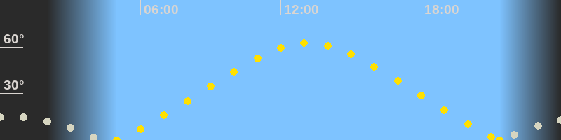 | Höchster Sonnenstand (Kulmination) | 13:10 Uhr (h = 62.6°) |