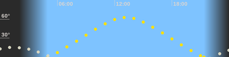 | Höchster Sonnenstand (Kulmination) | 13:10 Uhr (h = 62.6°) |