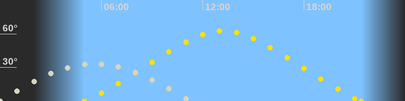 Höchster Sonnenstand (Kulmination)13:11 Uhr (h = 62.7°)