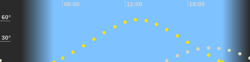 | Höchster Sonnenstand (Kulmination) | 13:15 Uhr (h = 61.6°) |