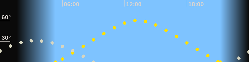| Höchster Sonnenstand (Kulmination) | 13:16 Uhr (h = 60.3°) |