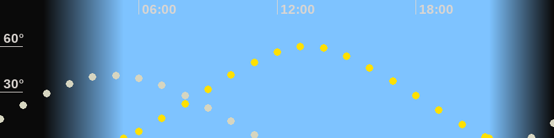 | Höchster Sonnenstand (Kulmination) | 13:16 Uhr (h = 59.9°) |