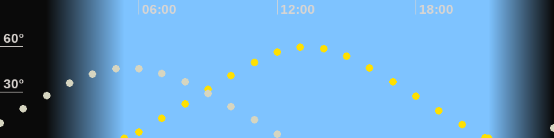 | Höchster Sonnenstand (Kulmination) | 13:16 Uhr (h = 59.7°) |