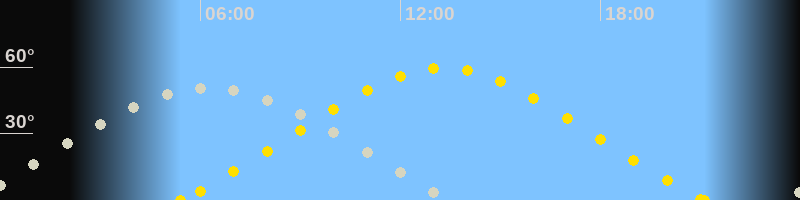| Höchster Sonnenstand (Kulmination) | 13:16 Uhr (h = 59.6°) |