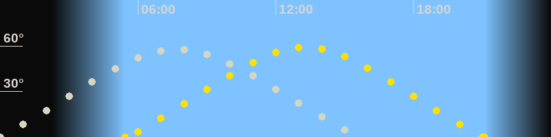 | Höchster Sonnenstand (Kulmination) | 13:16 Uhr (h = 59.1°) |