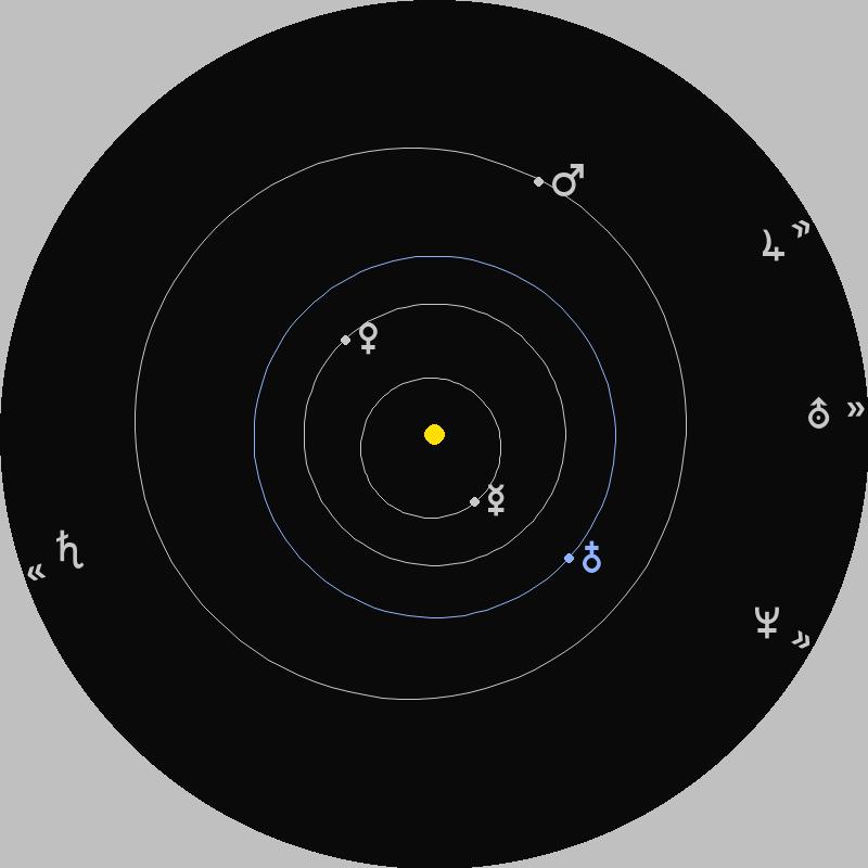 | f Merkur g Venus l Erde h Mars j Jupiter S Saturn A Uranus G Neptun |