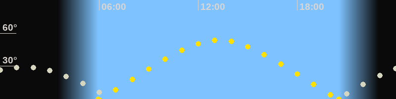 | Höchster Sonnenstand (Kulmination) | 13:14 Uhr (h = 53.6°) |