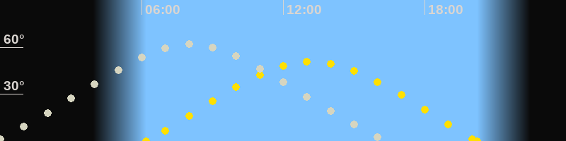 | Sonnenaufgang | 06:11 Uhr im Osten (αAz = 70.8°) |