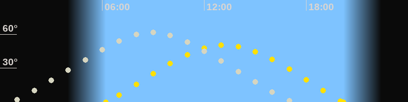 | Sonnenaufgang | 06:12 Uhr im Osten (αAz = 71.3°) |