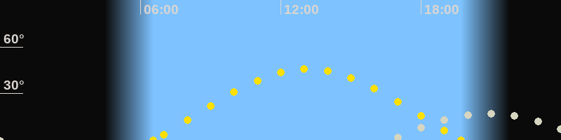 | Sonnenaufgang | 06:32 Uhr im Osten (αAz = 78.9°) |