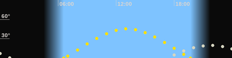 | Sonnenaufgang | 06:34 Uhr im Osten (αAz = 79.5°) |