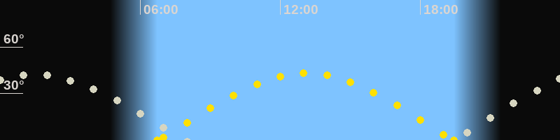 | Sonnenaufgang | 06:43 Uhr im Osten (αAz = 83.1°) |