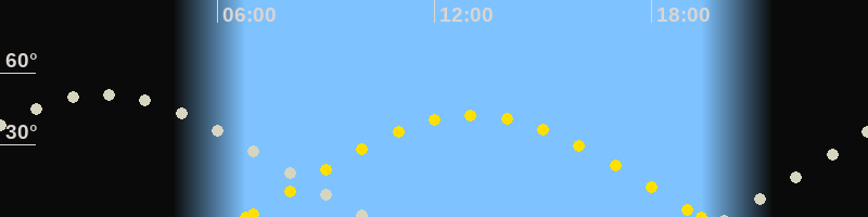 | Sonnenaufgang | 06:46 Uhr im Osten (αAz = 84.3°) |