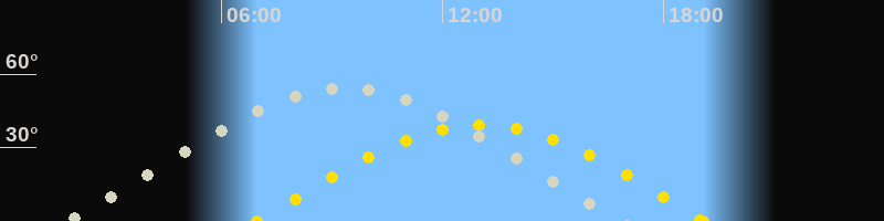 | Höchster Stand (Kulmination) | 09:21 Uhr (h=54.7°) |
