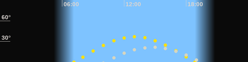 | Sonnenaufgang | 07:08 Uhr im Osten (αAz = 92.9°) |