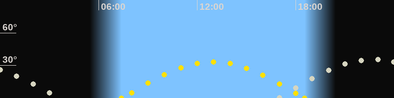 | Höchster Sonnenstand (Kulmination) | 12:57 Uhr (h = 33.4°) |