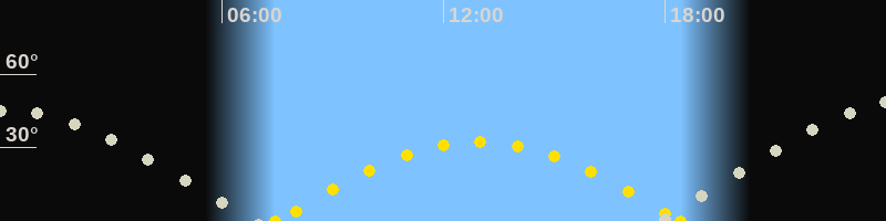 | Höchster Sonnenstand (Kulmination) | 12:57 Uhr (h = 32.3°) |