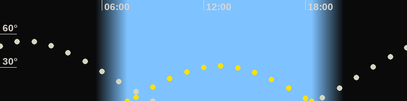 Sonnenaufgang07:30 Uhr im Osten (αAz = 101.4°)