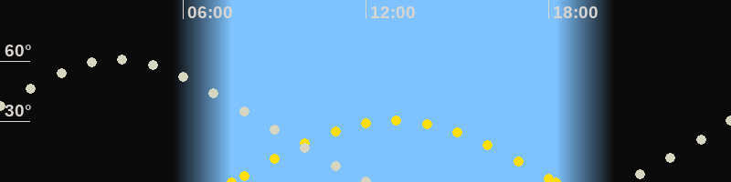 | Höchster Sonnenstand (Kulmination) | 12:55 Uhr (h = 30.4°) |
