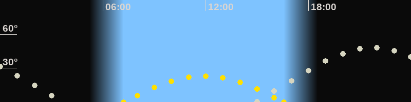 Höchster Sonnenstand (Kulmination)11:53 Uhr (h = 23°)