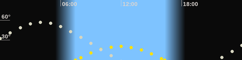 | Höchster Sonnenstand (Kulmination) | 11:55 Uhr (h = 20.6°) |