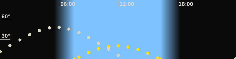 | Höchster Sonnenstand (Kulmination) | 11:55 Uhr (h = 20.1°) |