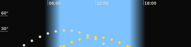 | Höchster Sonnenstand (Kulmination) | 11:56 Uhr (h = 19.4°) |
