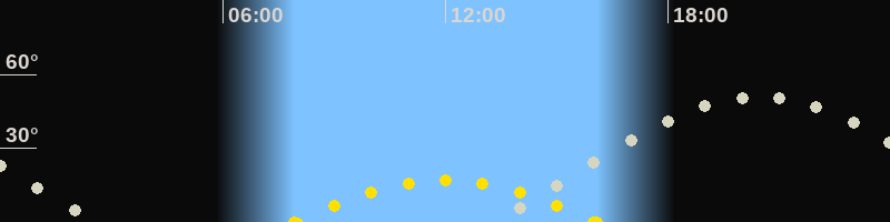 | Höchster Sonnenstand (Kulmination) | 12:00 Uhr (h = 16.9°) |
