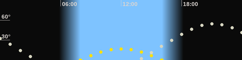 | Höchster Sonnenstand (Kulmination) | 12:01 Uhr (h = 16.8°) |