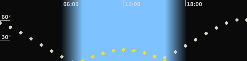 | Höchster Sonnenstand (Kulmination) | 12:02 Uhr (h = 16.5°) |